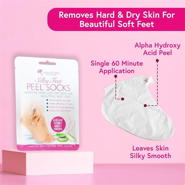 Invest in your feet today with Carnation Silky Feet Peel Socks and indulge in the luxury of silky smooth skin. Your feet deserve it!