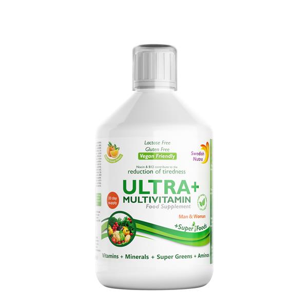Vitamin A, Vitamin C, Vitamin D3, Vitamin E, Vitamin B1, Vitamin B2, Vitamin B3, Vitamin B6, Vitamin B9 (Folic Acid), Vitamin B12, Vitamin B7, Vitamin B5, Vitamin K, Calcium, Magnesium, Zinc, Selenium, Copper, Manganese, Chromium Picolinate, Potassium, Iodine, Choline L-Bitartrate, Inositol, Paba (4-Aminobenzoic acid), Lutein, Zeaxanthin, COQ10, Amino acid Boost Blend, Super Green Blend and others.